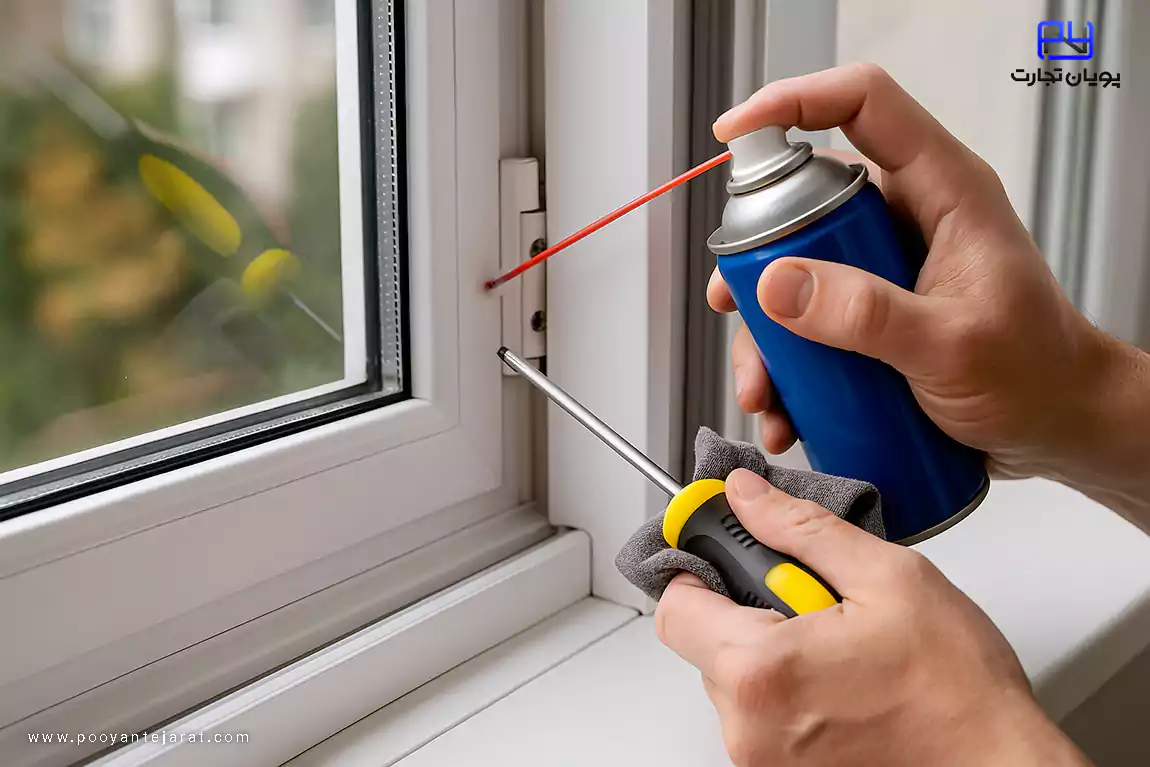 بعد از روغنکاری، چند بار پنجره را باز و بسته کنید تا روغن بهخوبی در قطعات پخش شود.